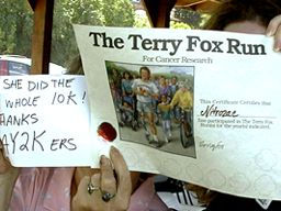 ![]() I did it! (I'm the one on the right, holding the certificate, in the black T-shirt.) ![]() My certificate! As a special thank you, those who sponsored my run will be getting a signed (by me) Terry Fox Run button in the mail! Thanks again! For those who just can't get enough, here's the animated gif version... |