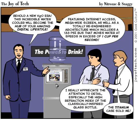 Welcome to the Joy of Tech... by Nitrozac and Snaggy. It's a little bit simpler in style than our other comic After Y2K, and a little more topical. We hope you enJoy! |