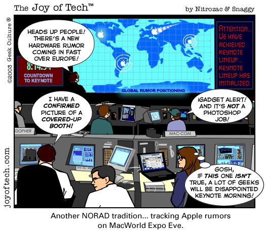If you're using a Mac and a newer version of Explorer, here's a neat trick courtesy of MacMerc. Drag the above little image to the top tool bar of your browser, it should "stick" afterwards. Now you have a graphical link to the Joy of Tech, one that will update everytime a new comic is uploaded. (You may have to refresh the image manually if it's in your cache.) If you need to delete or move it it, just control button/click and hold, then select delete, or just Command/drag it to the trash.