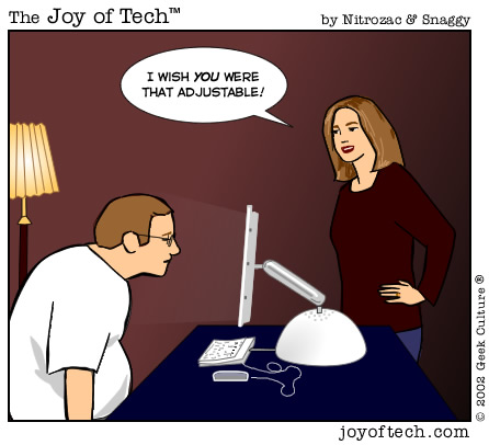 If you're using a Mac and a newer version of Explorer, here's a neat trick courtesy of MacMerc. Drag the above little image to the top tool bar of your browser, it should "stick" afterwards. Now you have a graphical link to the Joy of Tech, one that will update everytime a new comic is uploaded. (You may have to refresh the image manually if it's in your cache.) If you need to delete or move it it, just control button/click and hold, then select delete, or just Command/drag it to the trash.