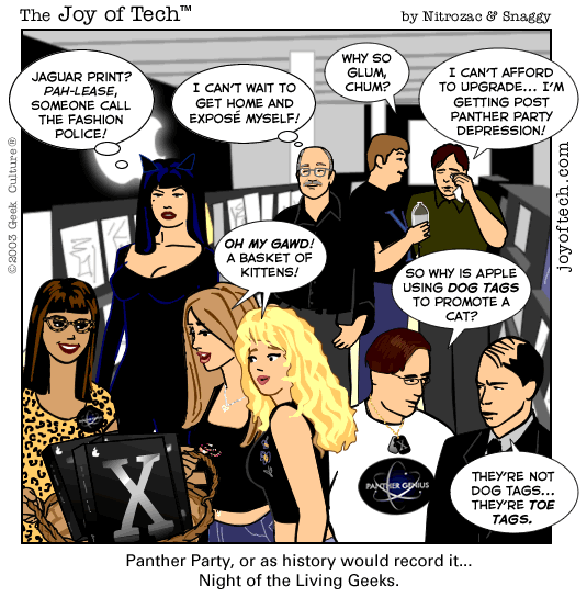If you're using a Mac and a newer version of Explorer, here's a neat trick courtesy of MacMerc. Drag the above little image to the top tool bar of your browser, it should "stick" afterwards. Now you have a graphical link to the Joy of Tech, one that will update everytime a new comic is uploaded. (You may have to refresh the image manually if it's in your cache.) If you need to delete or move it it, just control button/click and hold, then select delete, or just Command/drag it to the trash.