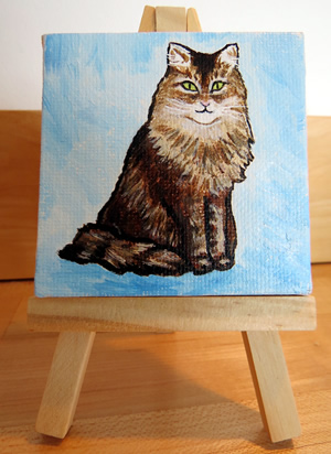 Nitrozac is now creating adorable little mini-paintings, of your pet, or scene, or of your favorite person! Hand painted on a 2"x 2" canvas, and includes the tiny wood easel to display it on! Makes a great addition to your office or home, and the most perfect gift ever! (If you'd like a larger version, contact us for a quote, thanks!) Note: shipping is a little bit more expensive on this item, as it includes tracking and insurance.