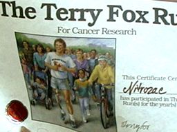 ![]() I did it! (I'm the one on the right, holding the certificate, in the black T-shirt.) ![]() My certificate! As a special thank you, those who sponsored my run will be getting a signed (by me) Terry Fox Run button in the mail! Thanks again! For those who just can't get enough, here's the animated gif version... |