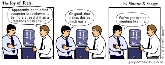 Welcome to the Joy of Tech... illustrated by Nitrozac and written by Nitrozac and Snaggy. It's a little bit simpler in style than our other comic After Y2K, and will be more topical. We hope you'll enjoy it! |