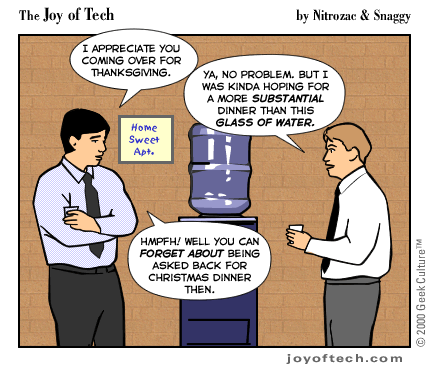 Welcome to the Joy of Tech... illustrated by Nitrozac and written by Nitrozac and Snaggy. It's a little bit simpler in style than our other comic After Y2K, and a little more topical. We hope you enJoy!