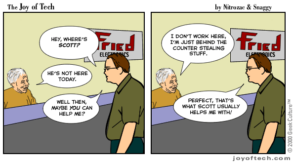 Welcome to the Joy of Tech... by Nitrozac and Snaggy. It's a little bit simpler in style than our other comic After Y2K, and a little more topical. We hope you enJoy!