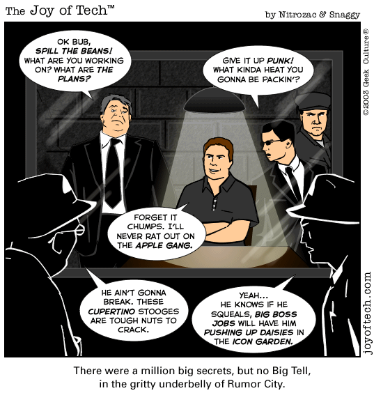 If you're using a Mac and a newer version of Explorer, here's a neat trick courtesy of MacMerc. Drag the above little image to the top tool bar of your browser, it should "stick" afterwards. Now you have a graphical link to the Joy of Tech, one that will update everytime a new comic is uploaded. (You may have to refresh the image manually if it's in your cache.) If you need to delete or move it it, just control button/click and hold, then select delete, or just Command/drag it to the trash.