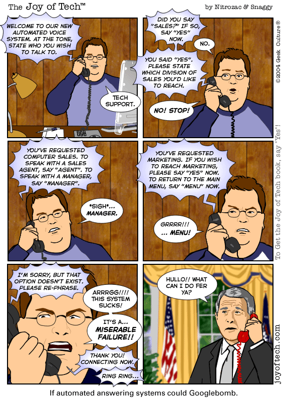 Today's comic features SuperFan Mister Boo! Relevancy Link: Bush Google bombed. |