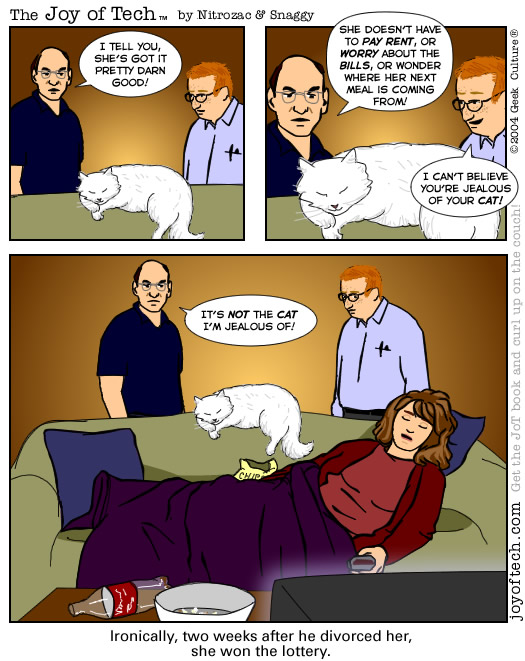 - This comic is species-ist, the humans should be on the couch and the cat should have to work!