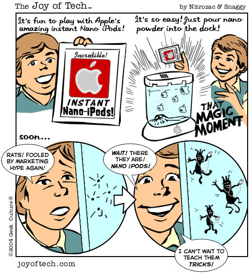 If you're using a Mac and a newer version of Explorer, here's a neat trick courtesy of MacMerc. Drag the above little image to the top tool bar of your browser, it should "stick" afterwards. Now you have a graphical link to the Joy of Tech, one that will update everytime a new comic is uploaded. (You may have to refresh the image manually if it's in your cache.) If you need to delete or move it it, just control button/click and hold, then select delete, or just Command/drag it to the trash.