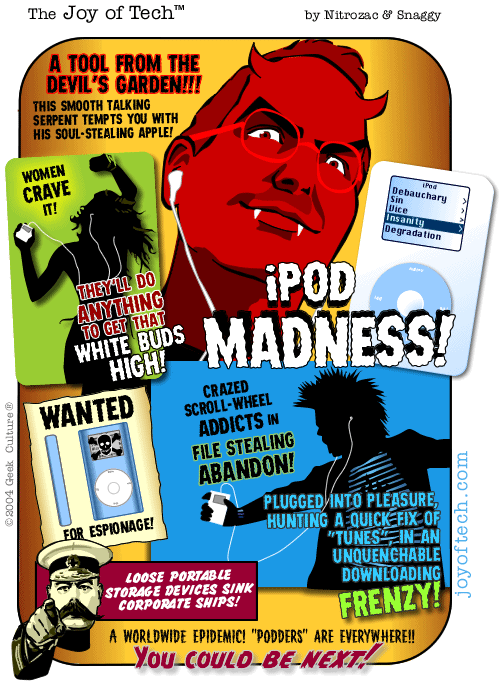 - The likelihood of iPods aiding and abetting corporate and military espionage.