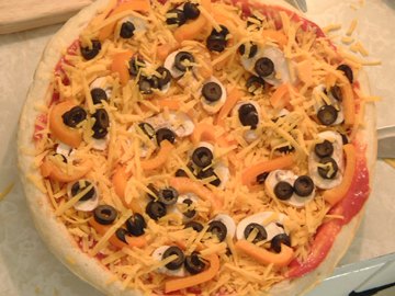 Bake at 375 degrees F. for 10 or 15 minutes, or until the crust browns. Longer if you like your crust crunchy. :)